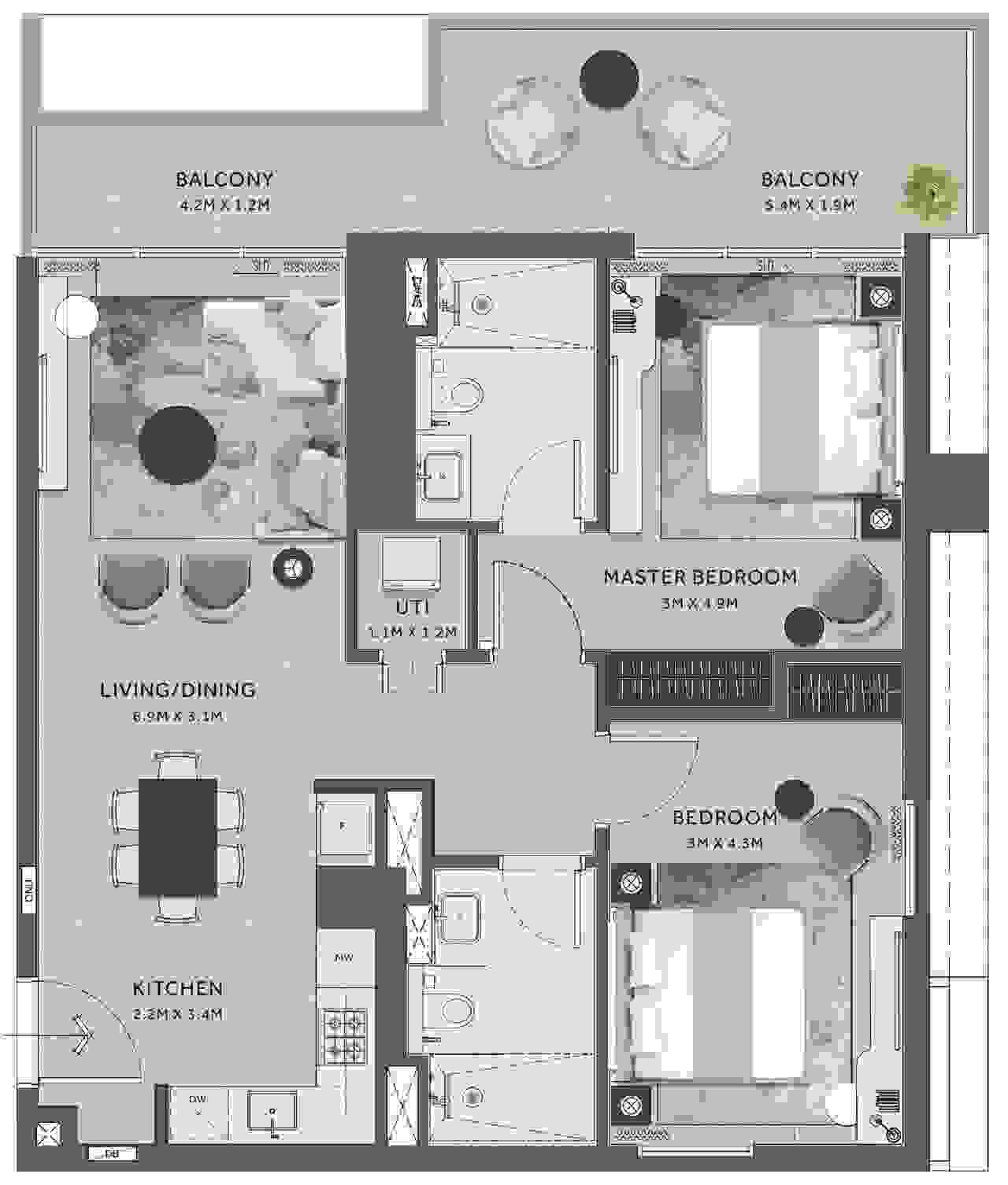 | Type: | 2 Bedrooms |