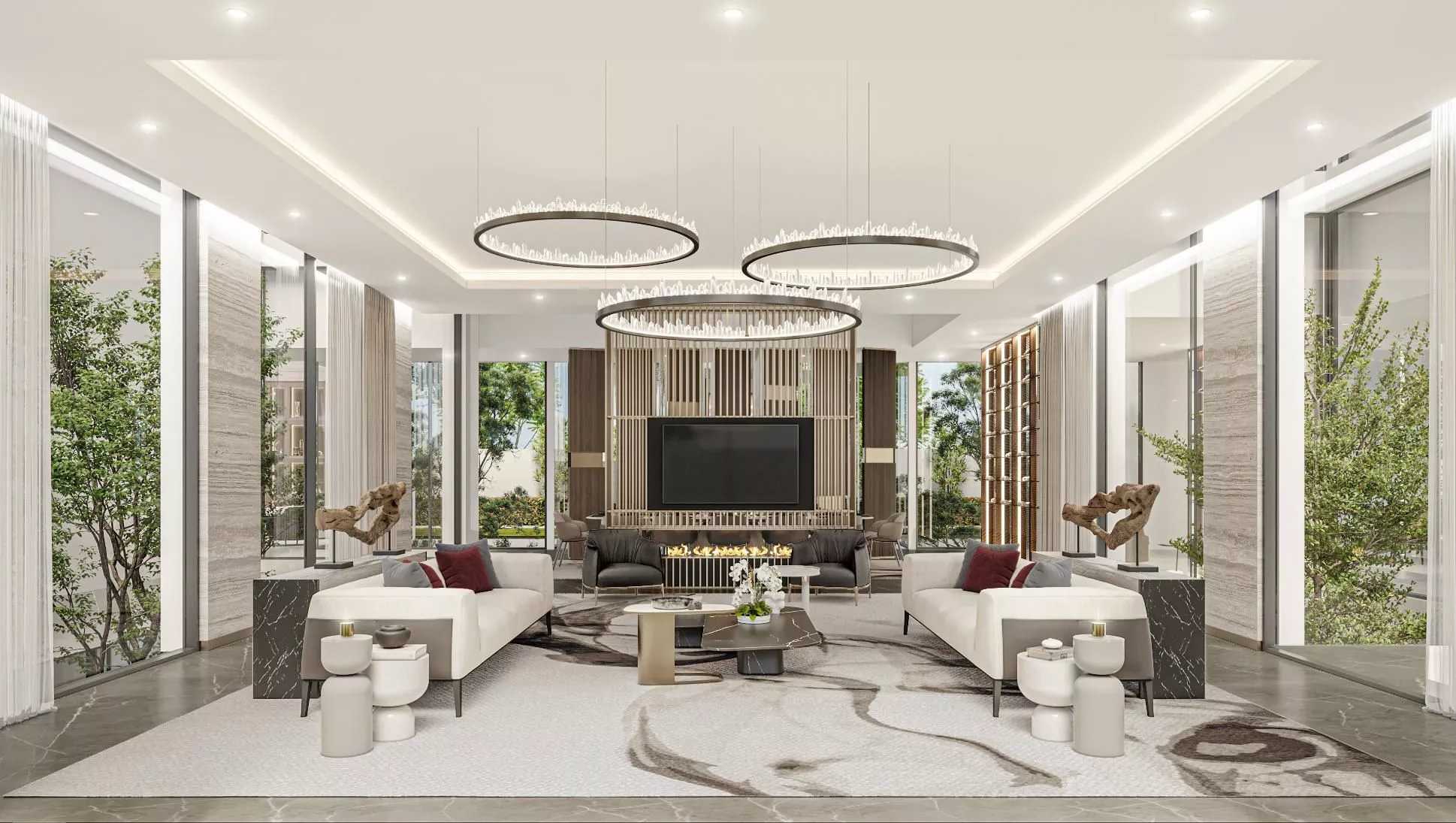 With stunning views of the golf course and lake, the villas are designed to provide residents with maximum privacy. They are beautifully complemented by rich marble, cool metals and lush greenery.