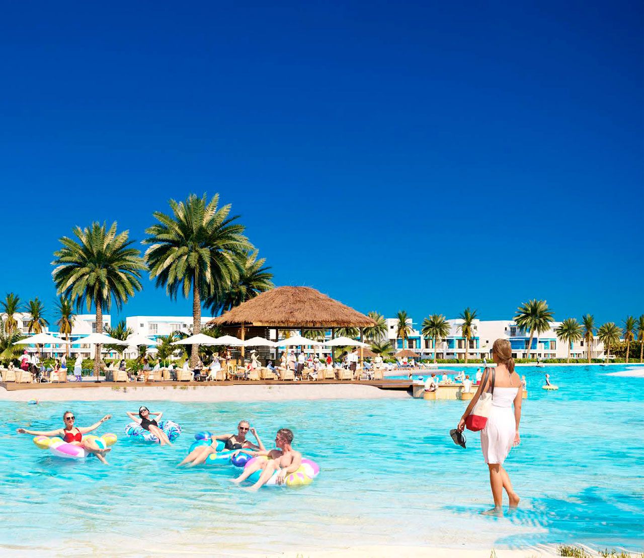 Due for completion in Q4 2024, DAMAC Lagoon is set to provide the ultimate resort living environment in the center of Dubai. The development is expected to be the same size as the luxury DAMAC Hills development, which currently spans across a huge area of 42 million sq.ft. Residents will benefit from all essential amenities and a well-developed infrastructure right on their doorsteps, since the master plan of DAMAC Lagoon includes nurseries, schools, mosques, fine eateries and alcohol-licensed bars, among many other premium facilities. Undoubtedly, the gorgeous centrepiece of the family-friendly development is the previously mentioned lazy river, which will be built in a D-shaped form to showcase the DAMAC brand. There will also be a waterpark with numerous slides and rides, ensuring exciting leisure activities for adults and children in the heart of the community.